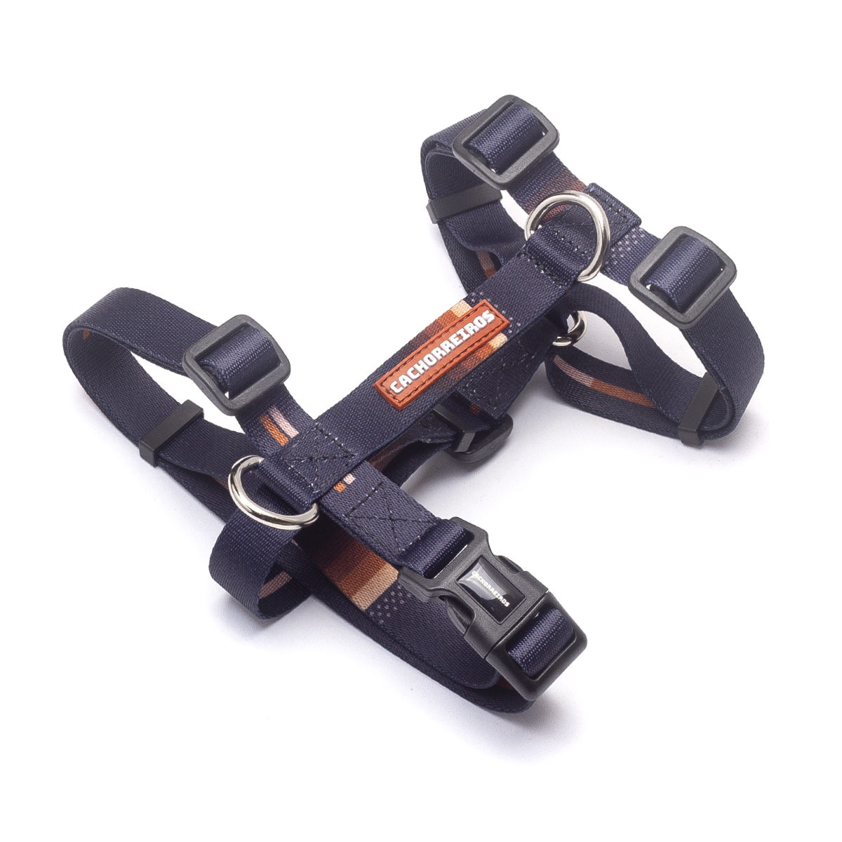 Peitoral de fácil ajuste e colocação no seu cão, contando com duas meia argolas posicionada na frente (mais perto do pescoço) e outra na parte de trás(mais perto da cintura), escolha o melhor jeito de levar seu cachorro.